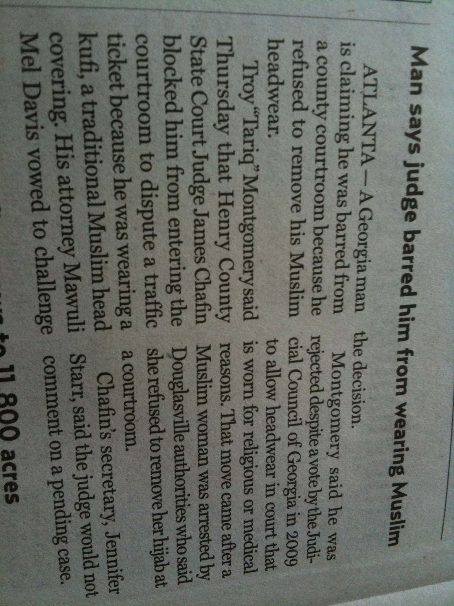 I had at first thought that the judge barred the man from wearing muslin. And I guess, therefore, that he had been arrested by the fashion police.