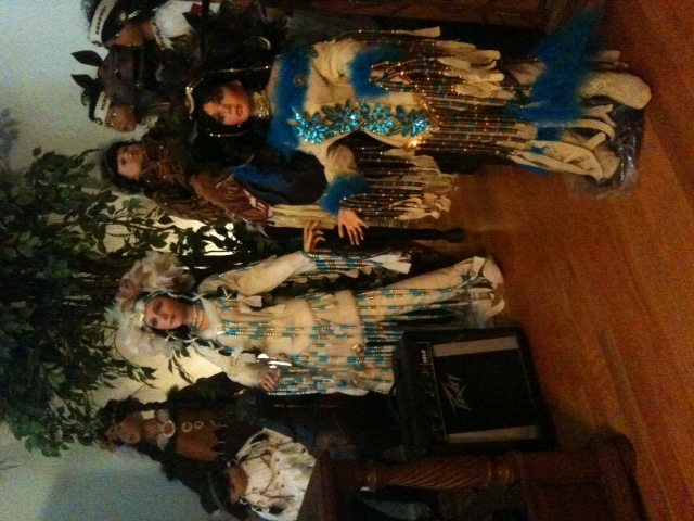 The formation taking up prime living room real estate is this Native American tableau. They are taller than my oldest son.