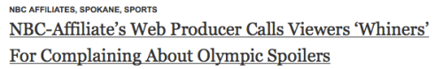 For those of us who did not want to know who won what medal in which event, we DID avoid Facebook, Twitter and various other information outlets. However, NBC as a whole, affiliates included, has been sharing this information freely during broadcasts, promos, etc., when we are trying to watch the events unfold.