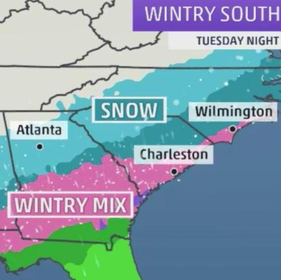 Meanwhile, we in Southeast Georgia got the “wintry mix” we expected (sleet, freezing rain) but not quite the amount. No meteorologist I know promised snow.