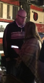 Cris and I carved out a great space for ourselves off the dance floor, protected by a long table and a load-bearing column. We could dance in peace and still watch the excellent band — the Wasted Potential Brass Band — and people in the bar. So many interesting humans. It reminded me of the George Clinton concert: a medley of shapes, ages, colors, proclivities. We heard an older man say to a younger woman, “Can I pay you?” We watched a lady pull a whole wad of money out of her own Narnia Bra. We observed one fellow creep on every single female in the place. Suddenly, I felt a hand on my waist. Guess who!