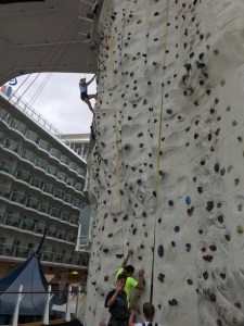 Oasis of the Seas is a massive boat that holds about 6,200 passengers. We paid much more than we would have paid on our go-to line, Carnival, chiefly because there was more to do on Oasis of the Seas (a rock-climbing wall!).