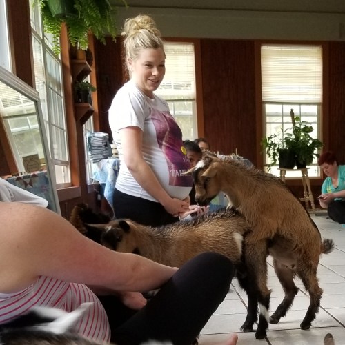 I’ll admit I was a bit excited about being invited to a baby shower where there would be goat yoga. I’m not a big fan of women-only baby showers. Unless I’m sure there will be alcohol, I usually avoid them.