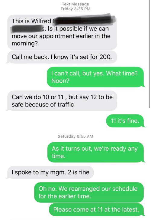 Me: I don’t have a bathroom up there. Unless you want to spring for a Porta Potty, I’m coming down!