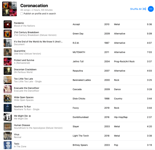 In our house, it’s “Love in the Time of Corona.”