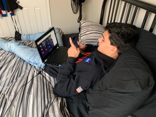 There are thousands of kids doing the same thing, so the network was overloaded. Dominic was in a synchronous classroom by 9 a.m.