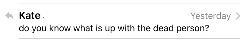 Nothing in the body of the email. (This is typical Kate. Also, Kate doesn’t have a cell phone.)