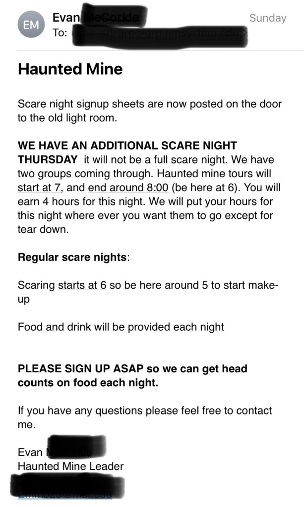 Thanks for going with me to the Haunted Mine at our university (aka place of business).