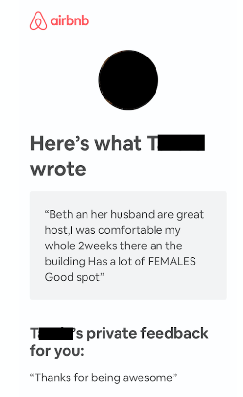Since Eddie and I listed our downtown condo on Airbnb last year, we’ve hosted all types of people. You have the distinction of being the guest who stayed the longest, and are — by far — the most “interesting.”