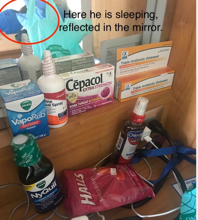 And kept everyone up three nights in a row by coughing. So I got back at him in my own special way: by harassing him mercilessly: